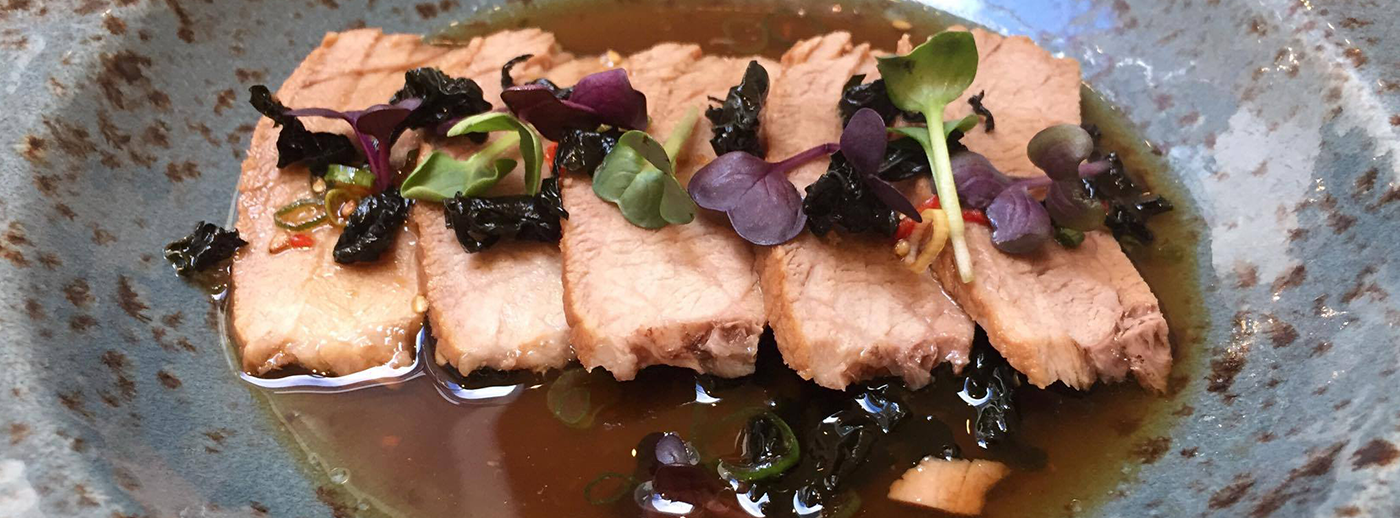 Slow cooked braised Pork Collar (instead of Pork belly) (4/5h) with Mirin / Soy / Kombu