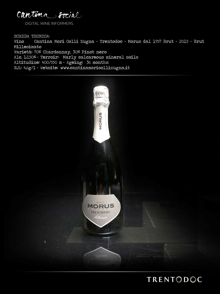Nel 1959 i contadini unirono le forze per creare la Cantina Sociale Mori Colli Zugna e da quel momento si è consolidata una e realtà forte, nel vincente progetto che scopriamo oggi. Il successo della Cantina è il frutto del lavoro dei soci con una visione ben chiara in mente: costruire una realtà in grado di interpretare il territorio e la sua gente per esaltare i suoi frutti migliori. Il vino che abbiamo avuto modo di assaggiare è il loro Trentodoc Morus. Un blend di Chardonnay e Pinot nero allevato in alta collina, tra i 400 e i 700 metri. Con il monte Baldo a fare da scudo che gli regala grande struttura e una spiccata acidità. 36 sono i mesi di attesa per questo prodotto arricchito ancor di più da un affinamento in tini di legno prima della presa di spuma. Un grande Trentodoc per una grande storia.