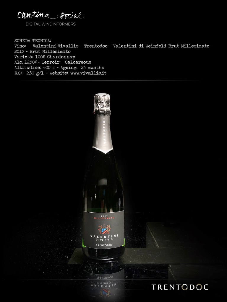 Dopo più di un anno ci siamo resi conto di quale sia stato il filo conduttore di tutte le bollicine TRENTODOC, l’eleganza! Sicuramente dovuta alle montagne e al suo terroir particolare, ma abbiamo scoperto anche un’altra grande caratteristica di questa DOC, ovvero, la storicità e la lunga tradizione! L’esperienza è uno dei fattori che più caratterizza un prodotto, soprattutto quando si punta all’eccellenza. Valentini di Weinfeld è la casa spumantistica di Vivallis, marchio che nasce nel 2004 raccogliendo l’eredità secolare della Società Agricoltori Vallagarina – Vallis Agri Scarl, cooperativa che affonda le proprie radici nel lontano 1908. “VI” come viticoltori, vite, vino e vita; “VALLIS” a dimostrare il forte legame con la latinità e con le radici della cultura enologica della valle. Ma non tutti sanno che le prime bottiglie di metodo classico in Trentino risalgono al 1899, ad opera di Arminio Valentini, pioniere della spumantistica in Vallagarina. E proprio in onore di Valentini, questa casa spumantistica ha dato il nome ai tre Trentodoc: Valentini di Weinfeld Brut e Rosé e Riserva Arminio. Oggi abbiamo degustato il loro Brut Millesimato, un 100% Chardonnay dalla eleganza innata e dalla grande freschezza, un prodotto completo che può essere consumato in qualsiasi momento della giornata.