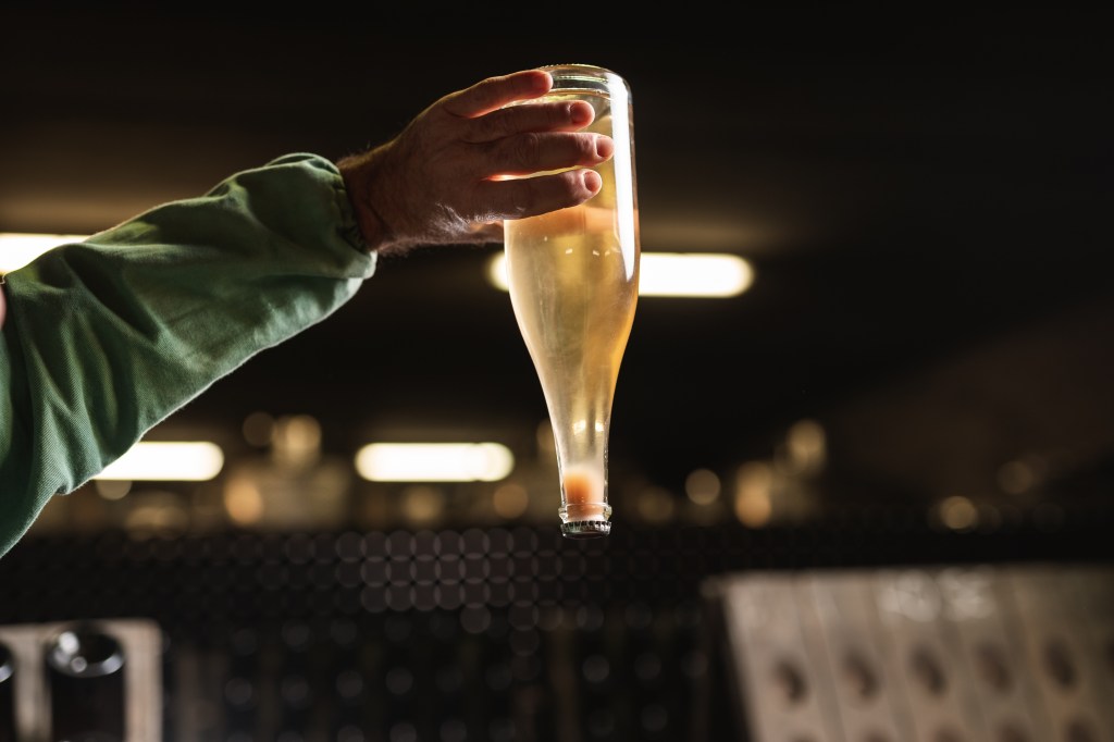Dopo la fermentazione in bottiglia e il periodo di maturazione sulle fecce, è necessario rimuovere i residui di lievito e di altre particelle presenti all’interno della bottiglia. Il remuage è l’operazione che consente di far scendere i residui al fondo della bottiglia. In questa fase, le bottiglie vengono posizionate a testa in giù su appositi cavalletti, chiamati pupitres, inclinati a 45 gradi rispetto al suolo. Le bottiglie vengono poi ruotate di un quarto di giro ogni giorno, in modo che i residui si spostino gradualmente verso il collo della bottiglia.